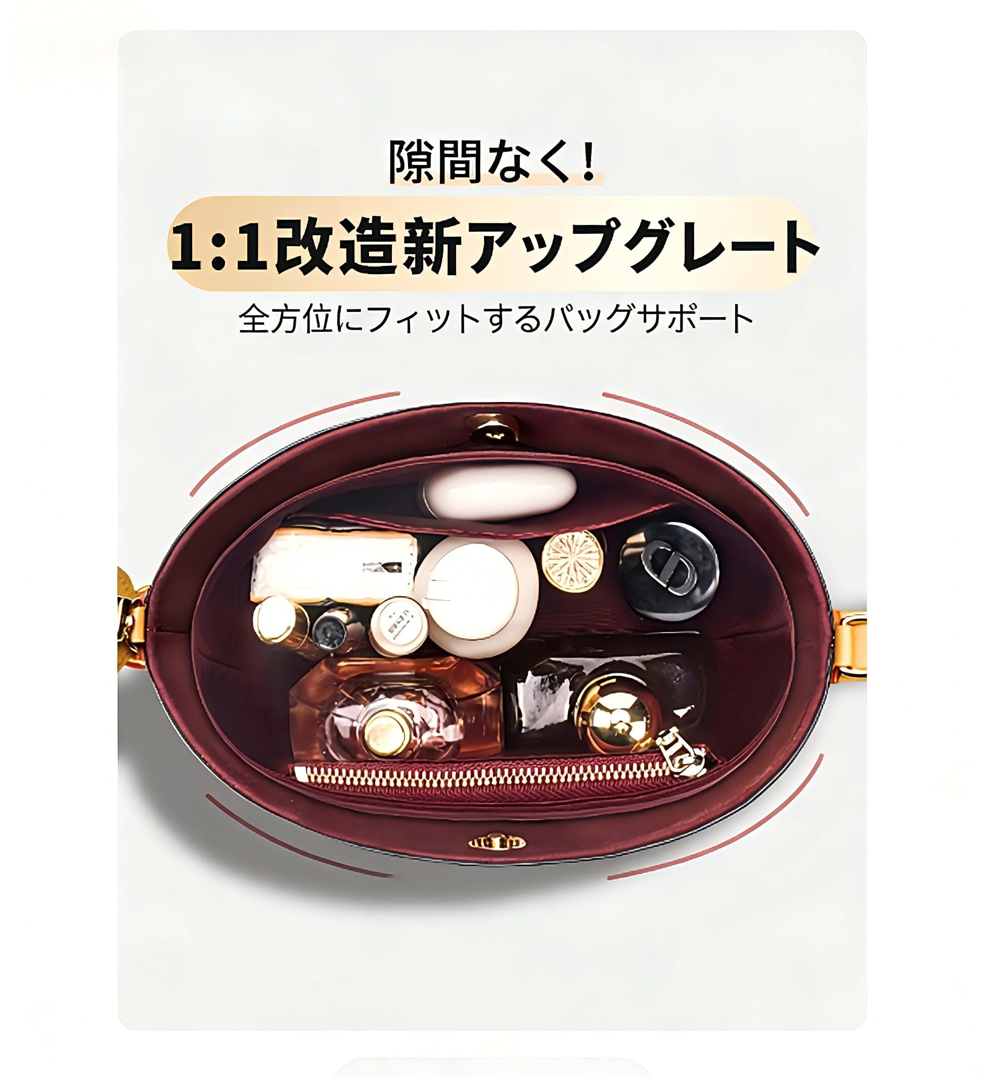 完璧適合設計:バッグの内側にピッタリフィットし、持ち運び時の型崩れを徹底防止し、バッグを新品同様に保ちます。底付き構造で自立も可能です。