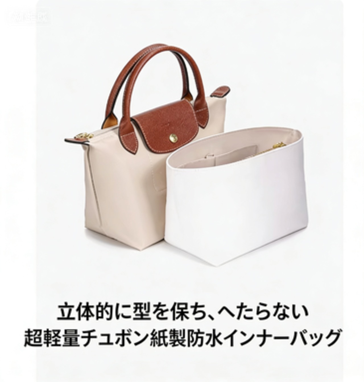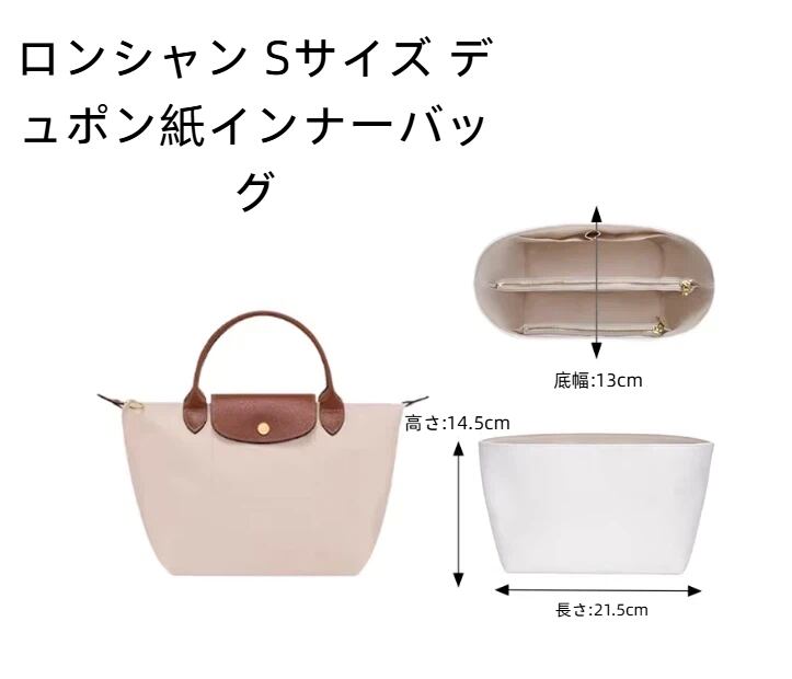 ロンシャン longchamp Sサイズ 専用 インナーバッグ 防水デュポン紙インナーバッグ ライナーポーチ バッグ型崩れ防止 カスタムアクセサリー