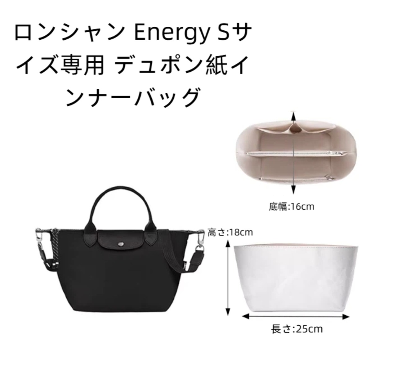 ロンシャン Energy Sサイズ専用 インナーバッグ 防水デュポン紙インナーバッグ ライナーポーチ バッグ型崩れ防止 カスタムアクセサリー